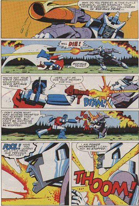 The second part of "Burning Sky" features one heck of a fight between Magnus and Galvatron... No Death's Head though, so I'm not happy.