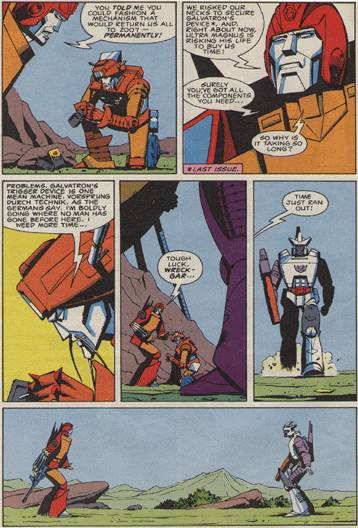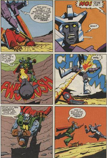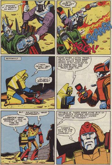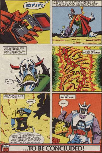 Death's Head gives Galvatron a damn good shootin', and the time travel thing is largely tied up. Everyone is returned to their own time - well, almost everyone...