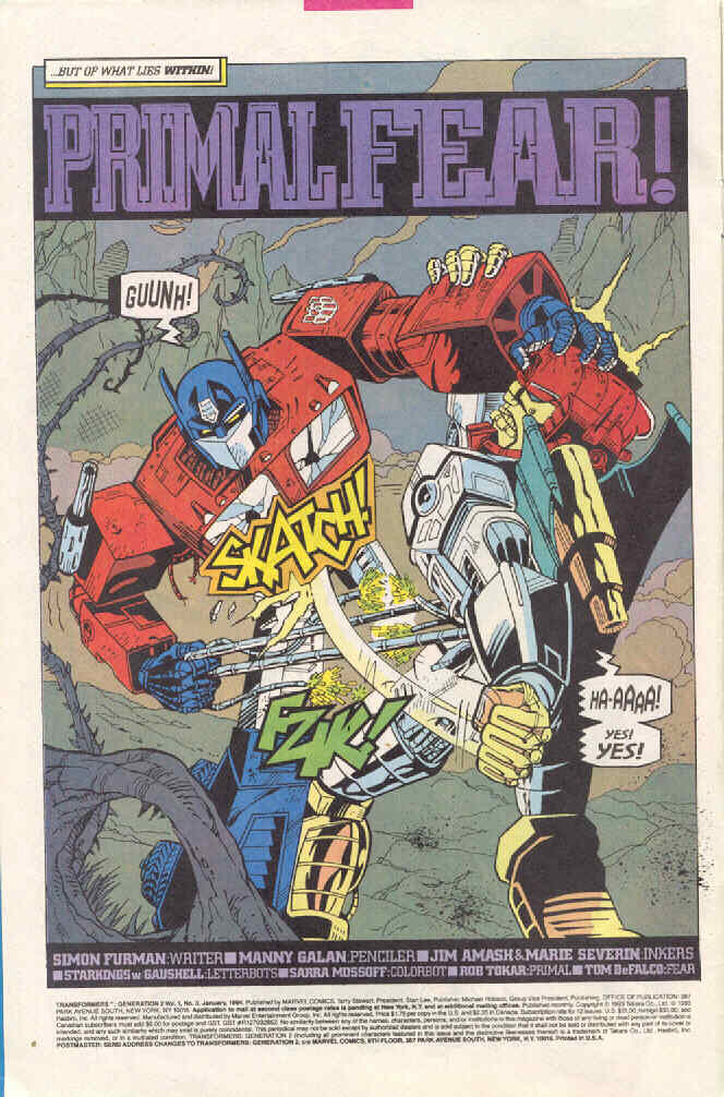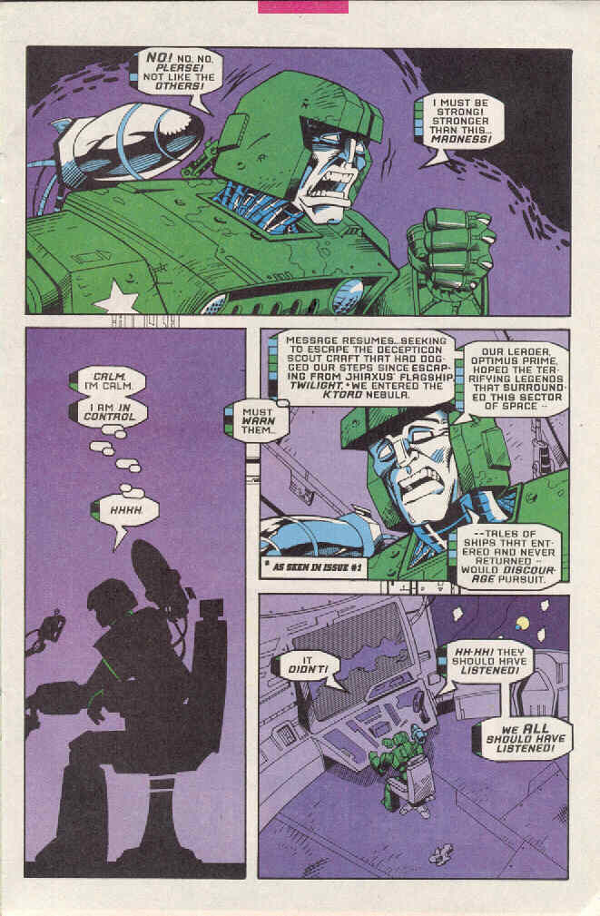 The first story seems a little bit like an average Star Trek epsiode - the TFs wander into a nebula and all start becoming very angry and violent. Of course, it's all the fault of some strange alien parasites that feed off rage. Sorry, Simon Furman, but I thought you were better than this.